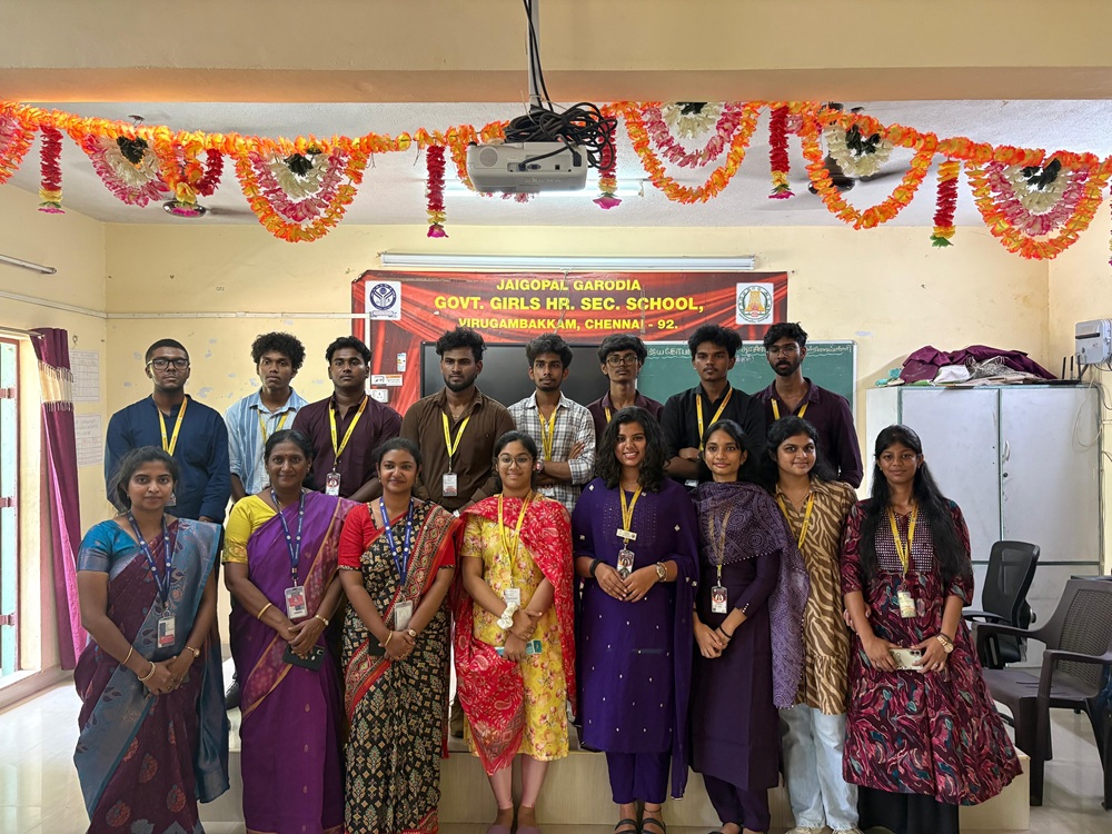 On 26-8-2025, an outreach program on "Edutech: Education Through Technology" was held at Jaigopal Garodia Government Girls School. The program was attended by 179 students from the 12th grade (Computer Science and Bio-Math group). The school's headmistress, Ms. Thamilarasi Kannan, welcomed the participants before handing the session over to the program's organizers. The event included various activities, such as career orientation, a technical quiz, and games. Students participated enthusiastically in all the activities.