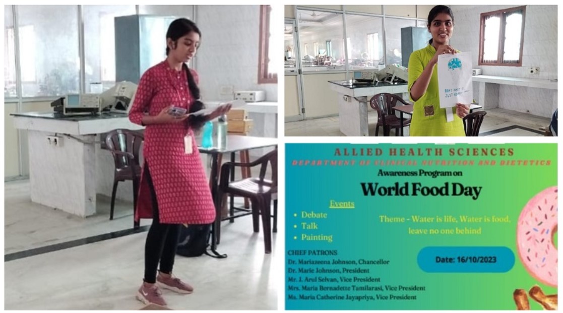 On the occasion of World Food Day (16th October 2023), an awareness program titled 'Water is Food, Water is Life: Leave No One Behind' was conducted to promote sustainable water use. Students actively participated in various competitions, helping raise awareness about the critical role of water in ensuring life and food security, in line with SDG 6 targets.
