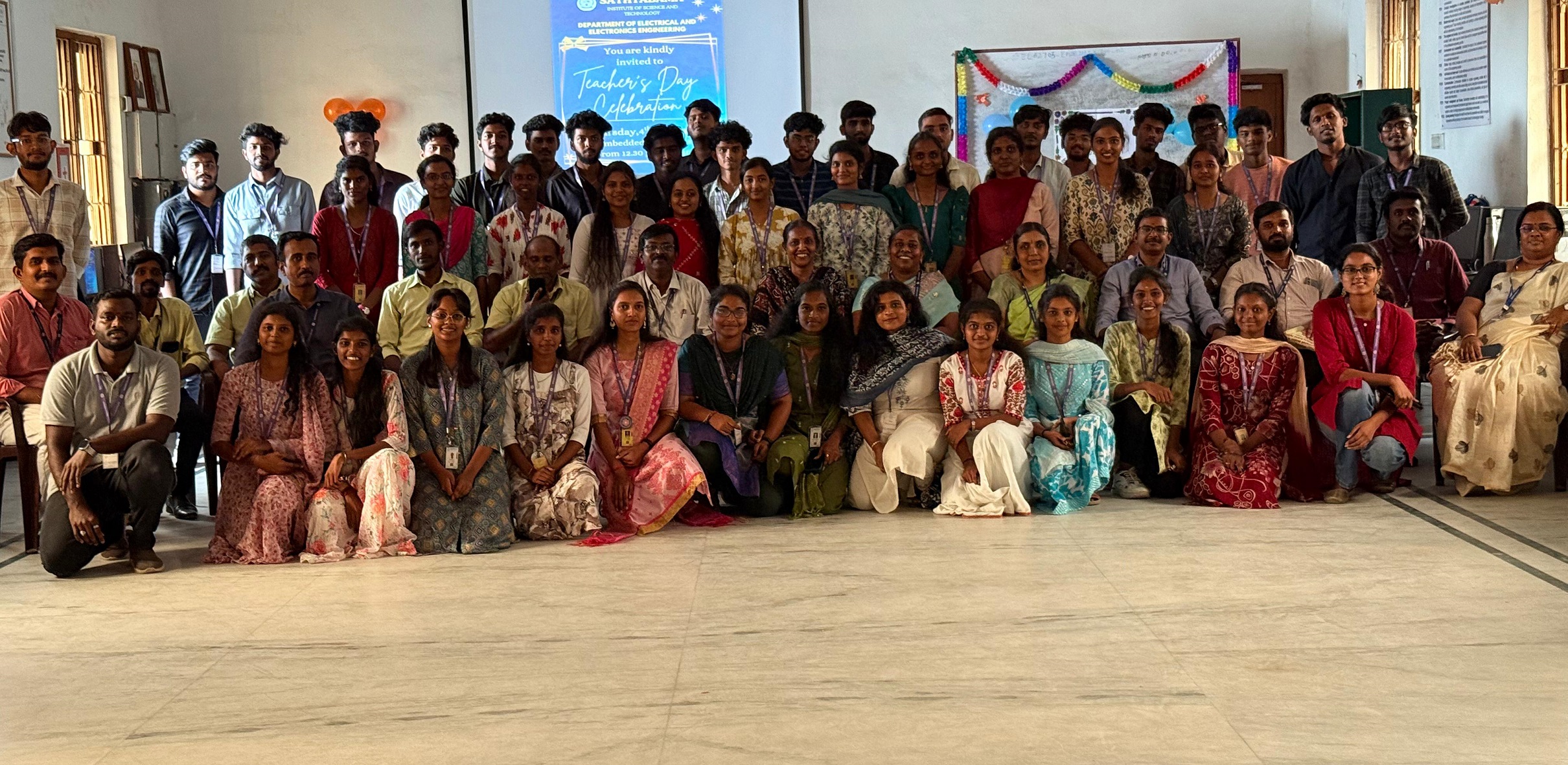 The IEI Student Chapter of Electrical and Electronics Engineering, Sathyabama Institute of Science and Technology, organized a Teachers’ Day Celebration on September 4th, 2025, to honour and appreciate the invaluable contributions of the faculty members. The event commenced with a tribute to Dr. Sarvepalli Radhakrishnan, followed by speeches and cultural performances that reflected the students’ gratitude towards their teachers. The celebration served as a heartfelt expression of respect and appreciation for the teachers’ dedication and commitment in guiding and inspiring students.