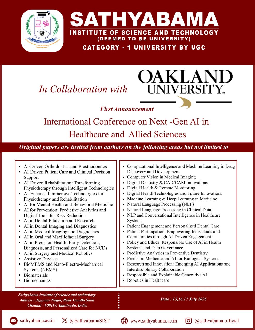 International Conference on Next Gen AI in Healthcare and Allied Science(INAHS 2026)